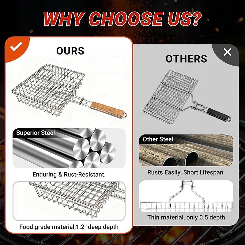 Panier de cuisson en maille métallique pour barbecue, légumes, poisson, viande, hamburgers
