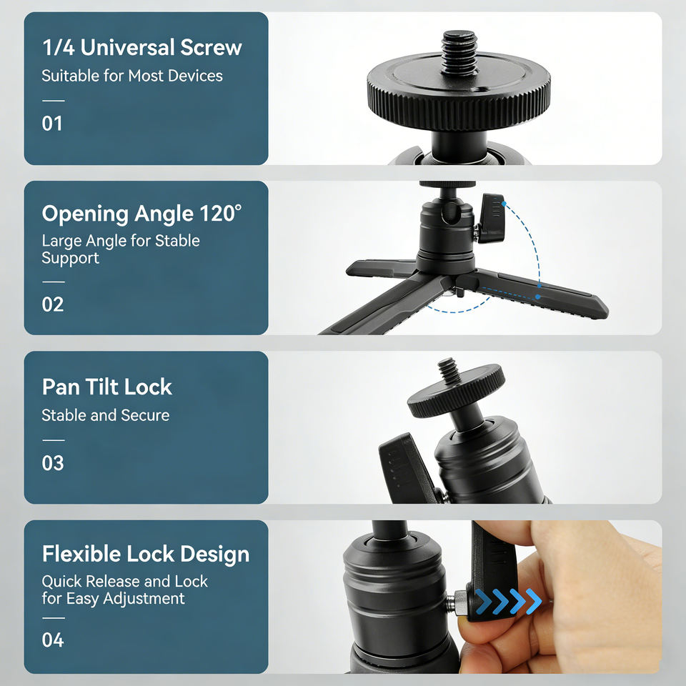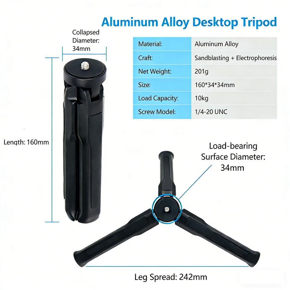 Metal Mini Tripod for Action Camera Desktop Tabletop Stand Compact Portable Travel for DJI Osmo Pocket 3 Action 5/6 Pro Camera