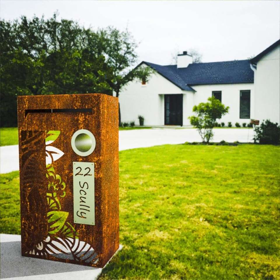 Boîte aux lettres en acier Corten avec design personnalisé