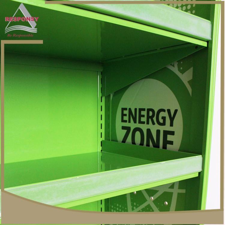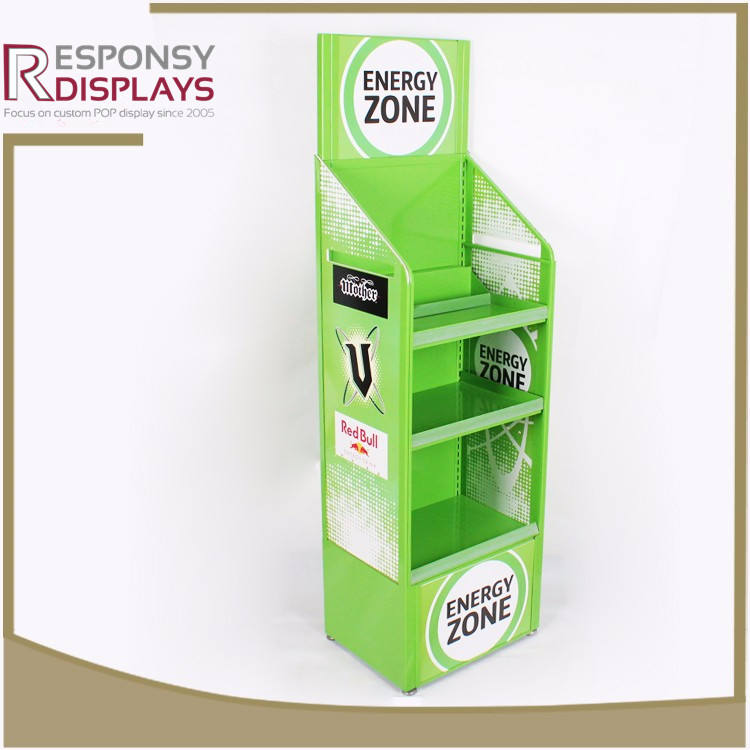 Type d'étagère:Support debout de boisson de plancher, Présentoir de boisson à trois niveaux, Étagère de vente au détail de PVC en métal