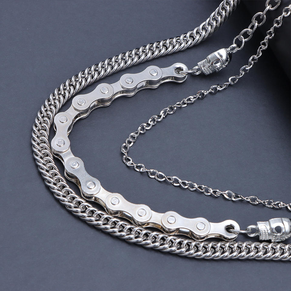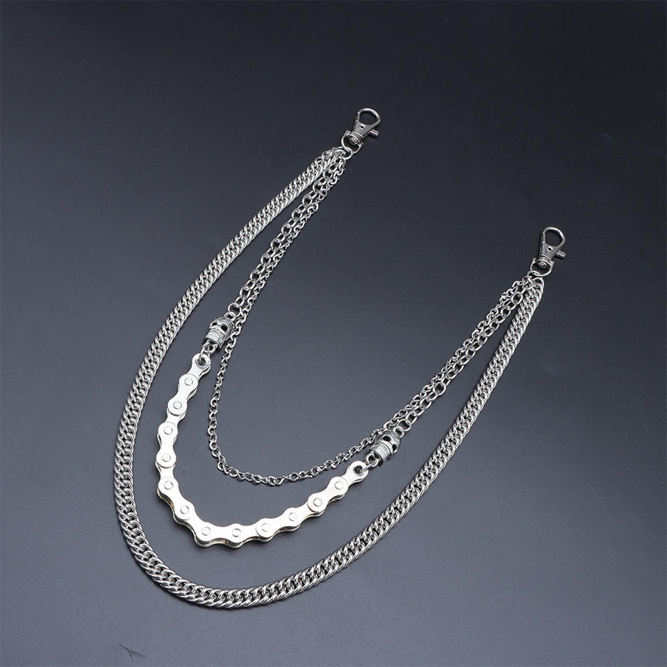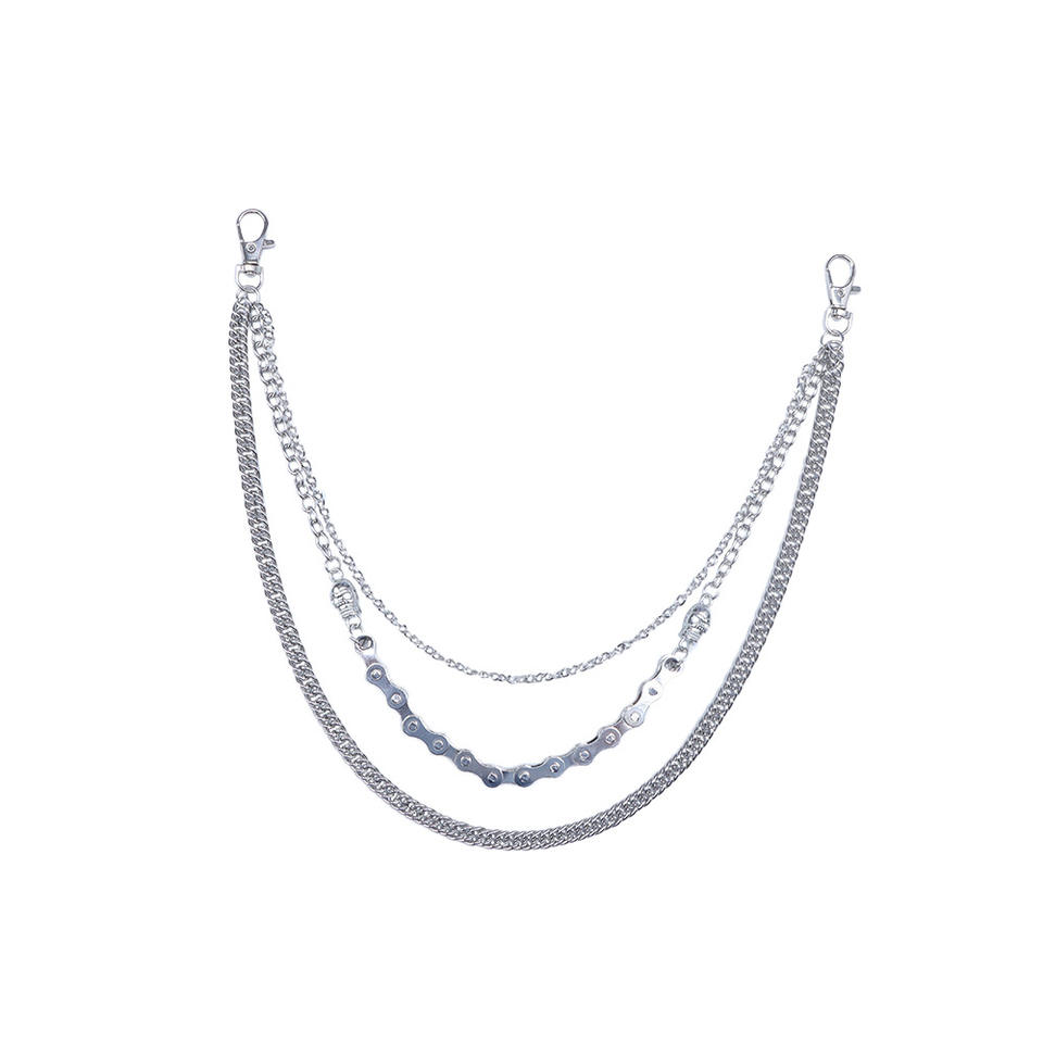 Chaîne de pantalon en métal multi-couches avec pendentif tête de mort en acier inoxydable, style punk, accessoire streetwear hip-hop pour hommes et femmes