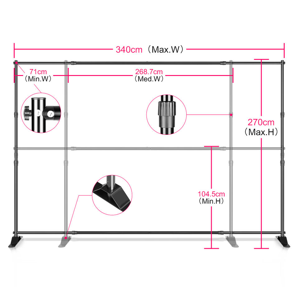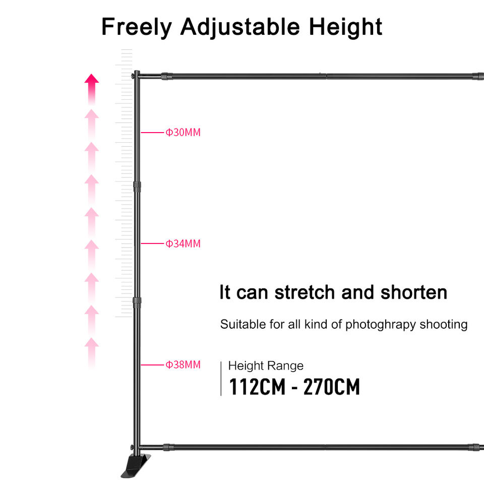 Système de studio photo et vidéo en métal, support de fond à double barre transversale