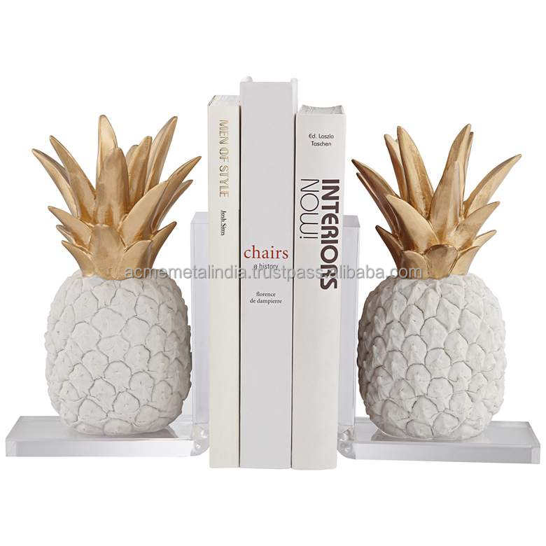 Porte-livres en métal en forme d'ananas, finition dorée et blanche, idéal pour les livres lourds sur le bureau
