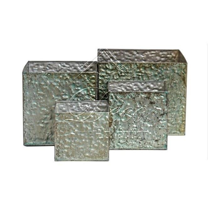 Jardinière carrée rustique en métal galvanisé, pot de fleurs en fer martelé, bac décoratif industriel pour jardin, pot d'intérieur et d'extérieur