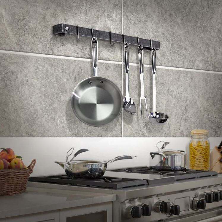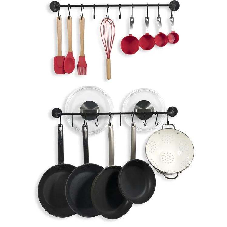 Support mural en métal pour casseroles, couvercles et ustensiles, avec crochets de suspension, organisateur de cuisine, fabriqué en Inde