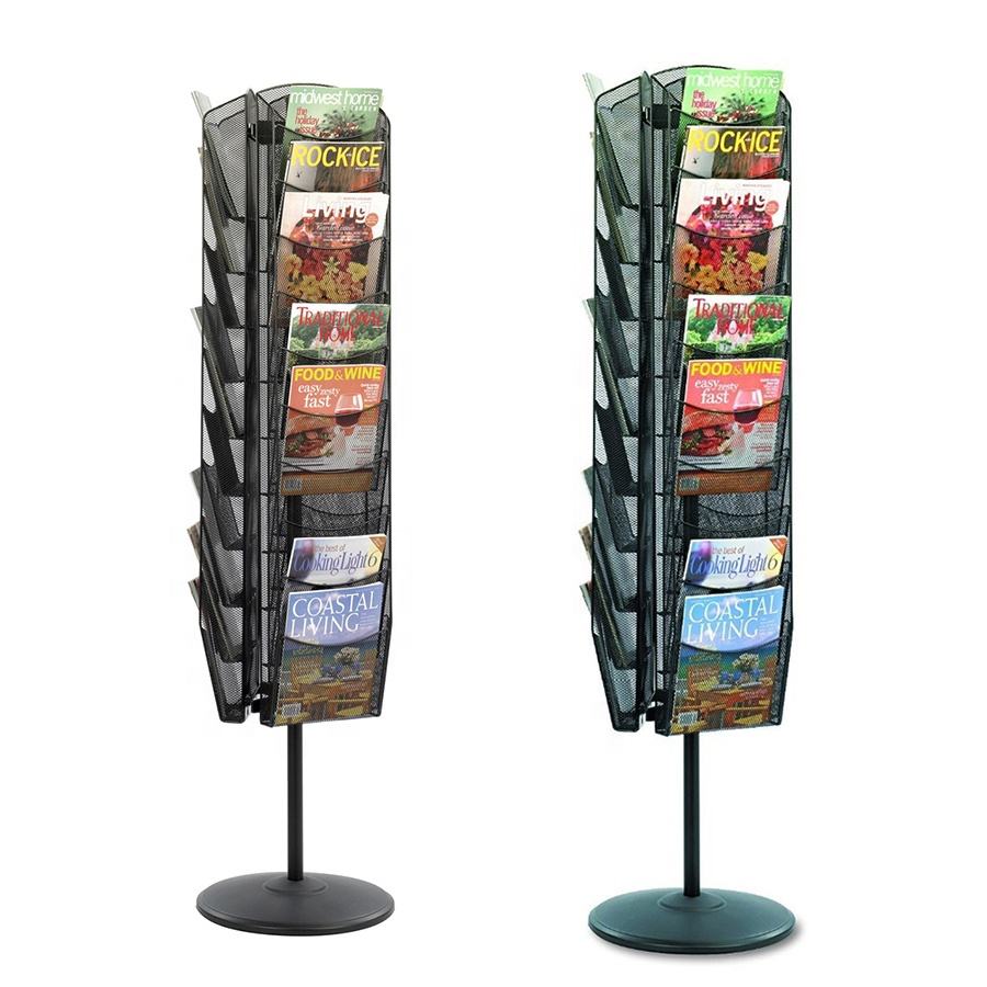 Support de présentation rotatif moderne en métal noir thermolaqué pour journaux et brochures de supermarché