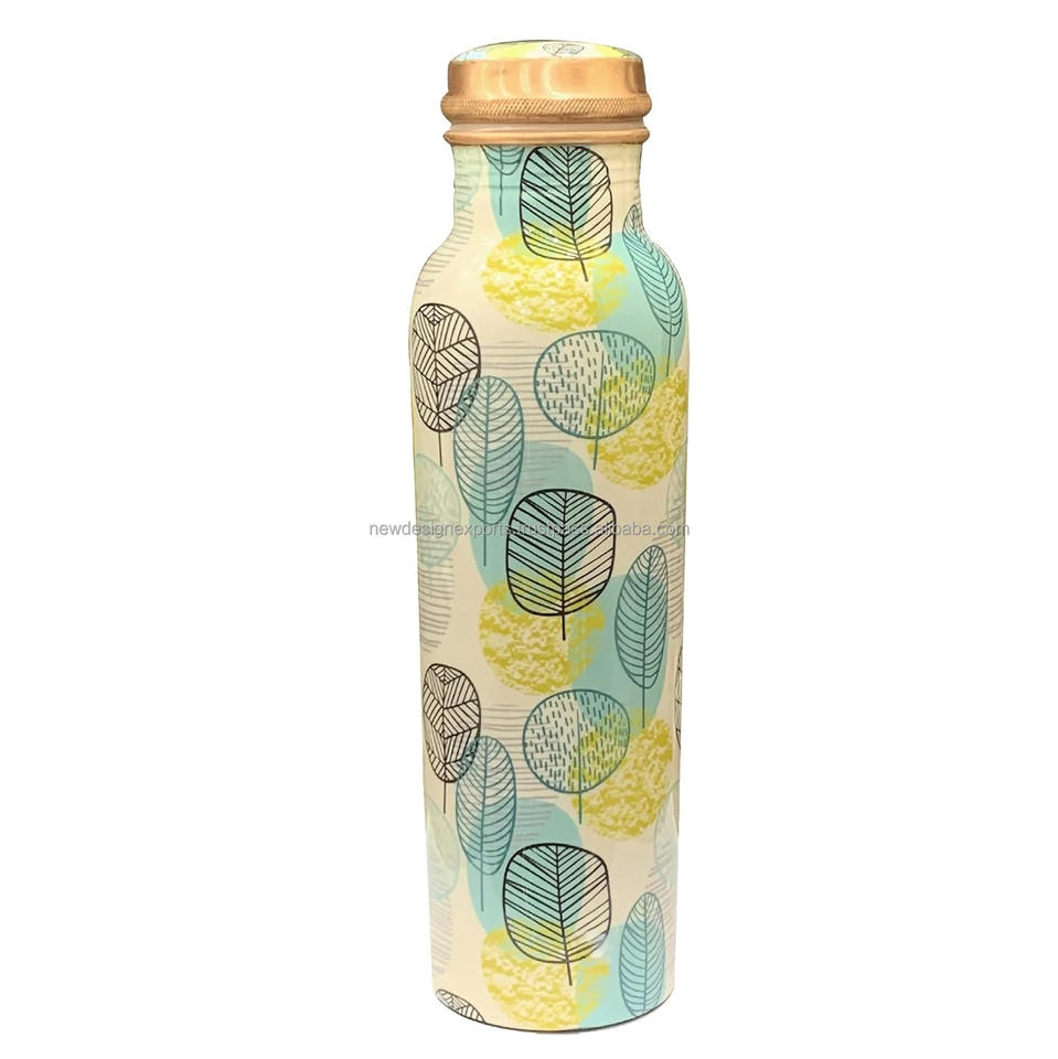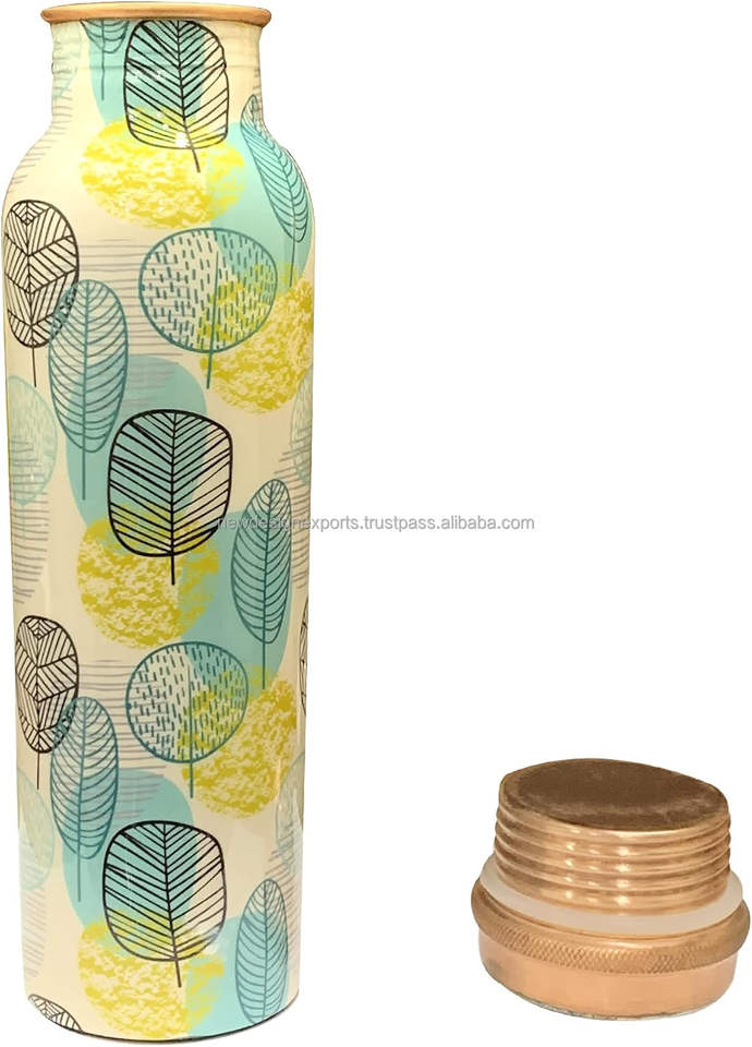 100% bouteille de verres en métal de cuivre pur personnalisé verre étanche imprimé écologique jetable pour boire