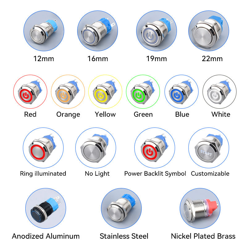 Nom du produit:Interrupteur à bouton-poussoir étanche en métal
