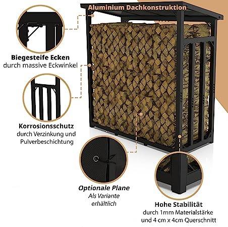 Lemo HM10066 Anthracite Steel Garden Log Rack Andirons Firewood Storage Stacking Aid for Outdoor Use