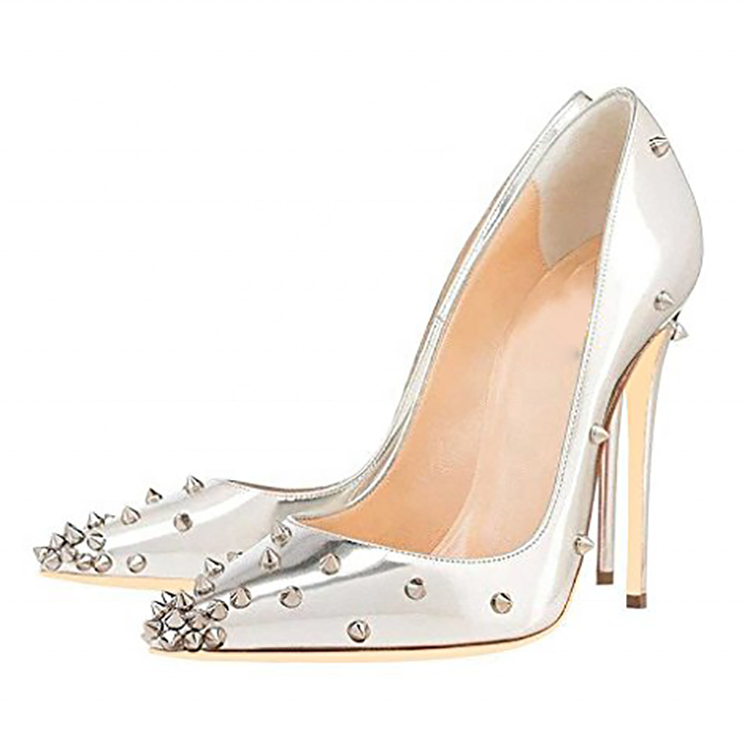 Escarpins à talon fin et bas pour femme, à bout pointu, avec rivets métalliques décoratifs, à enfiler, pour rendez-vous, grande taille 43