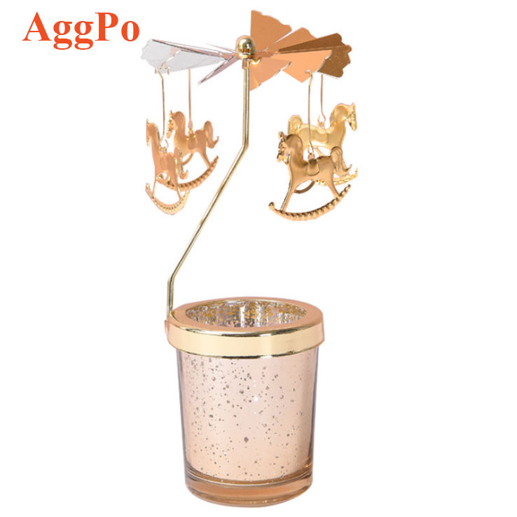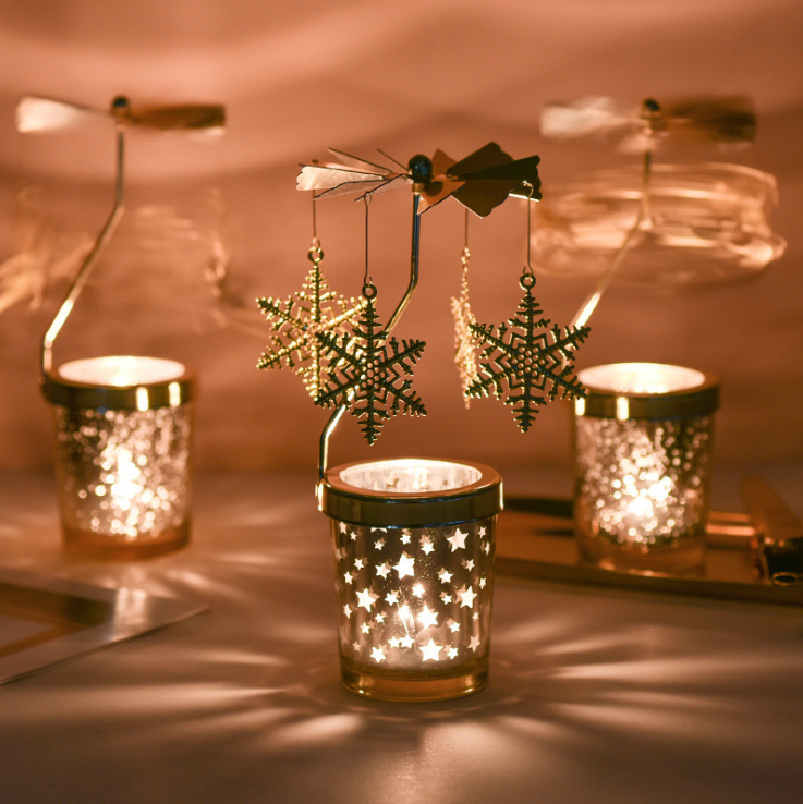 Chandelier rotatif en métal, carrousel de Noël, bougeoir tournant pour bougie chauffe-plat, doré, plusieurs motifs au choix