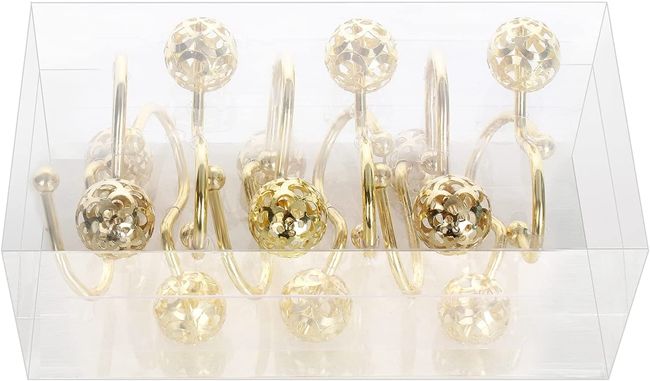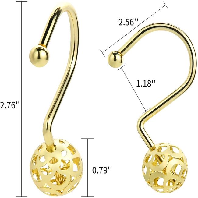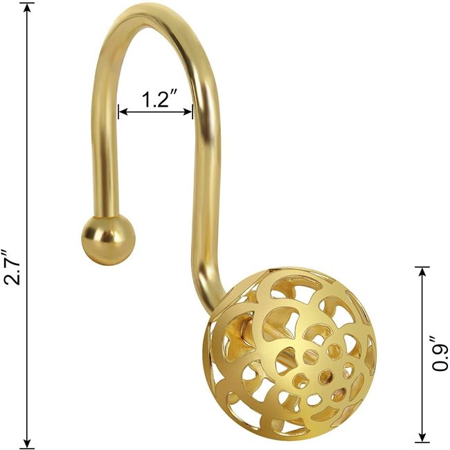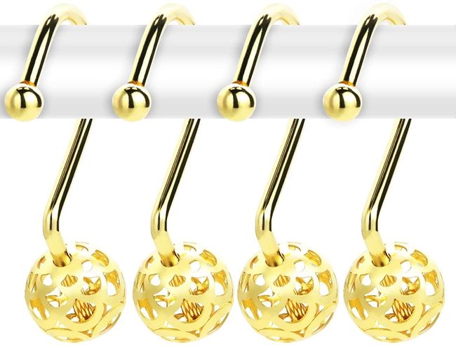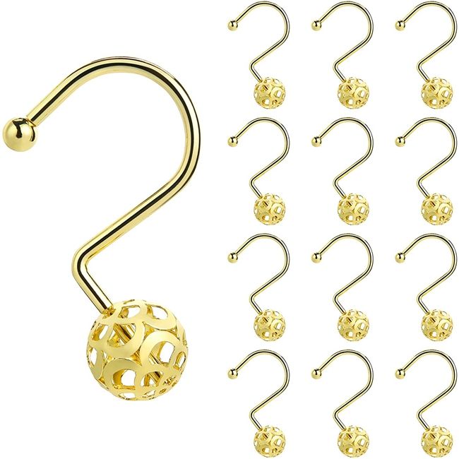 Anneaux de rideau en métal antirouille, design boule creuse, crochets de rideau de douche dorés, lot de 12 crochets décoratifs en laiton pour rideau de douche