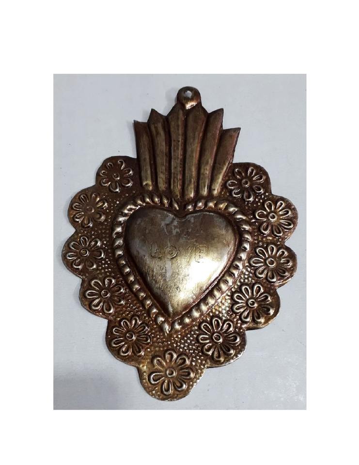 Cœur sacré en métal, motif floral, cuivre doré antique pour la décoration de la maison