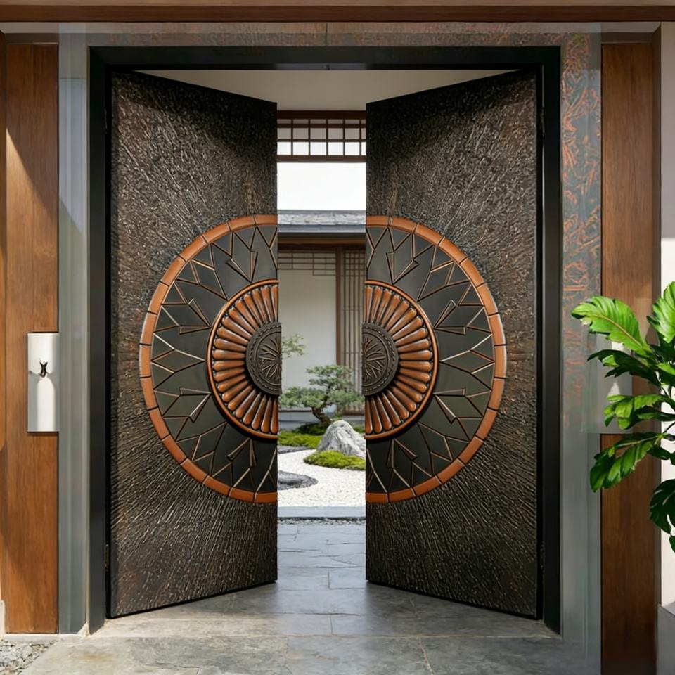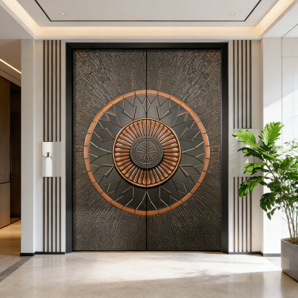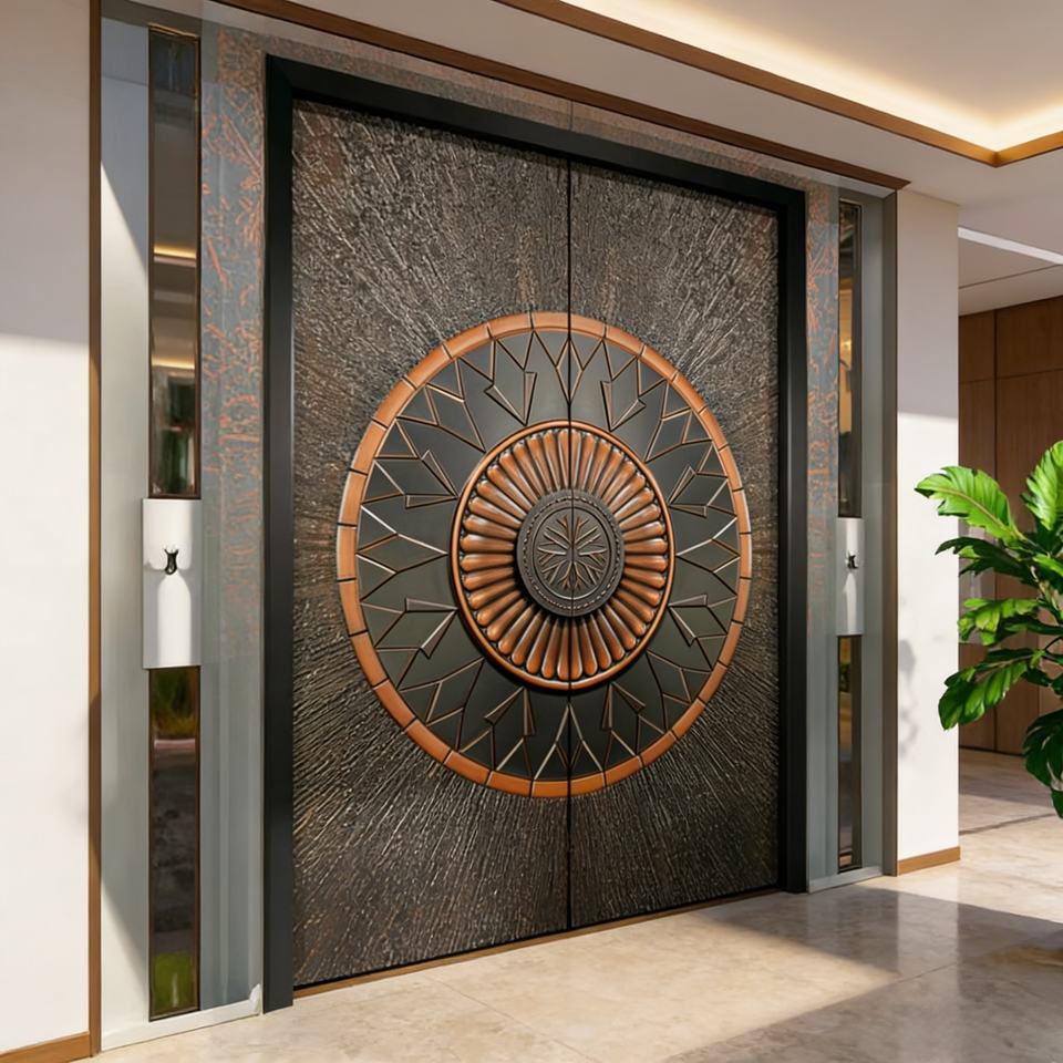 Portes d'entrée de villa en métal, portes doubles en aluminium, designs de luxe pour entrée principale, portes doubles