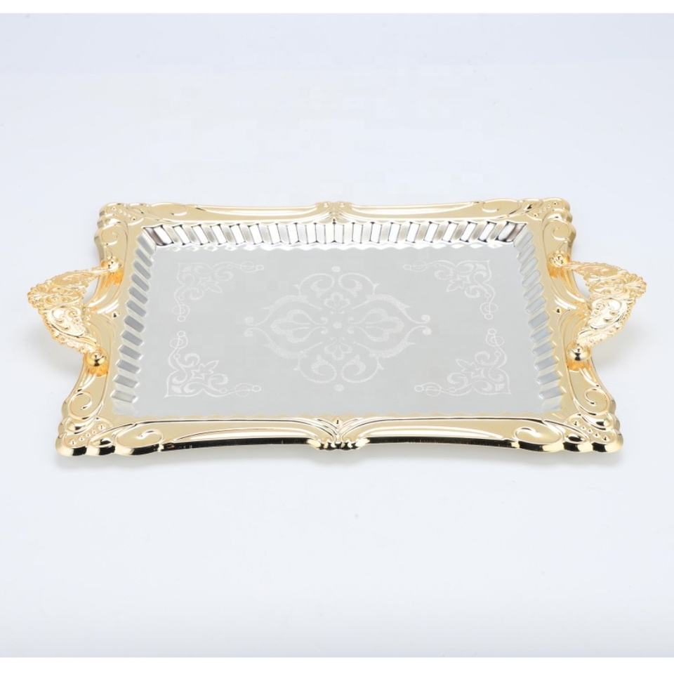 Plateau de service en métal avec poignées Plateau de service en or Plateau rectangulaire en métal de style arabe