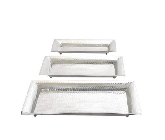Ensemble de deux plateaux de service en métal, décoration variée de luxe pour mariage, plateau de restauration pour hôtel, plateau de service attrayant en métal lourd