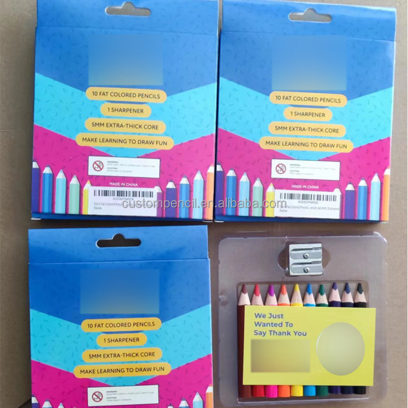 Paquet de 10 crayons de couleur triangulaires géants en forme de graisse courte pour enfants Taille-crayon en métal extra épais à noyau avancé en bois