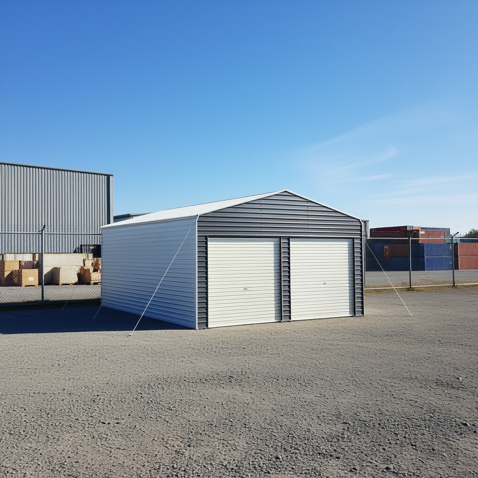Kit d'extension de carport métallique 20x20 avec portes enroulables, mur avant et rangement arrière pour équipement de stockage