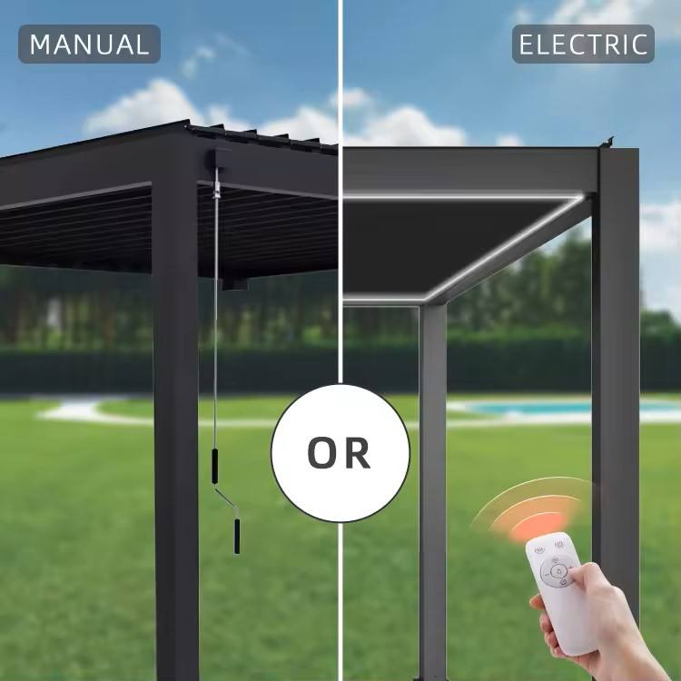 Pergola bioclimatique en aluminium à lames orientables avec panneau solaire en métal, revêtement en poudre, pour fenêtre, fabriquée au Vietnam