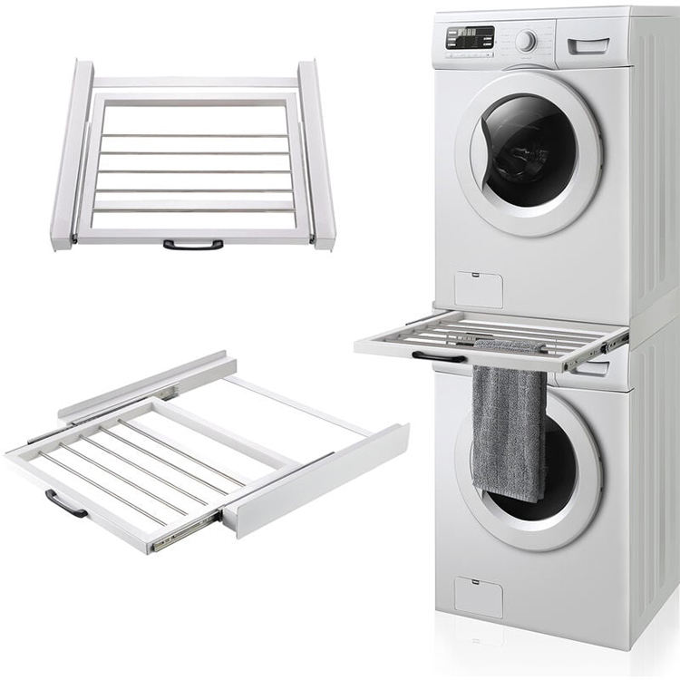 Kit d'empilage en métal pour lave-linge et sèche-linge Kit d'empilage connexion Buanderie Kits d'empilage avec étagère coulissante