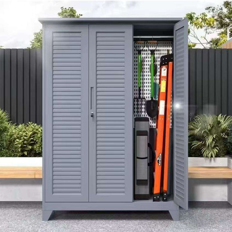 Armoire de rangement en métal avec porte à persiennes imperméable et résistante au soleil pour villa extérieure, cour, terrasse, jardin, outils, équipement de pêche