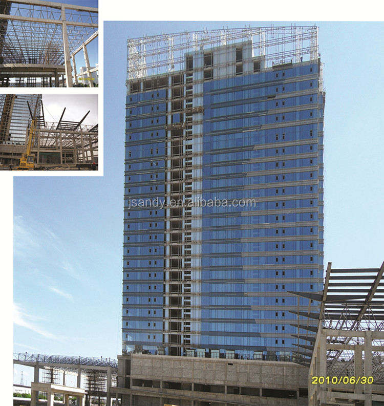 Structure métallique de construction, revêtement mural extérieur, cadre visible, verre feuilleté, mur-rideau, norme GCW, norme GB
