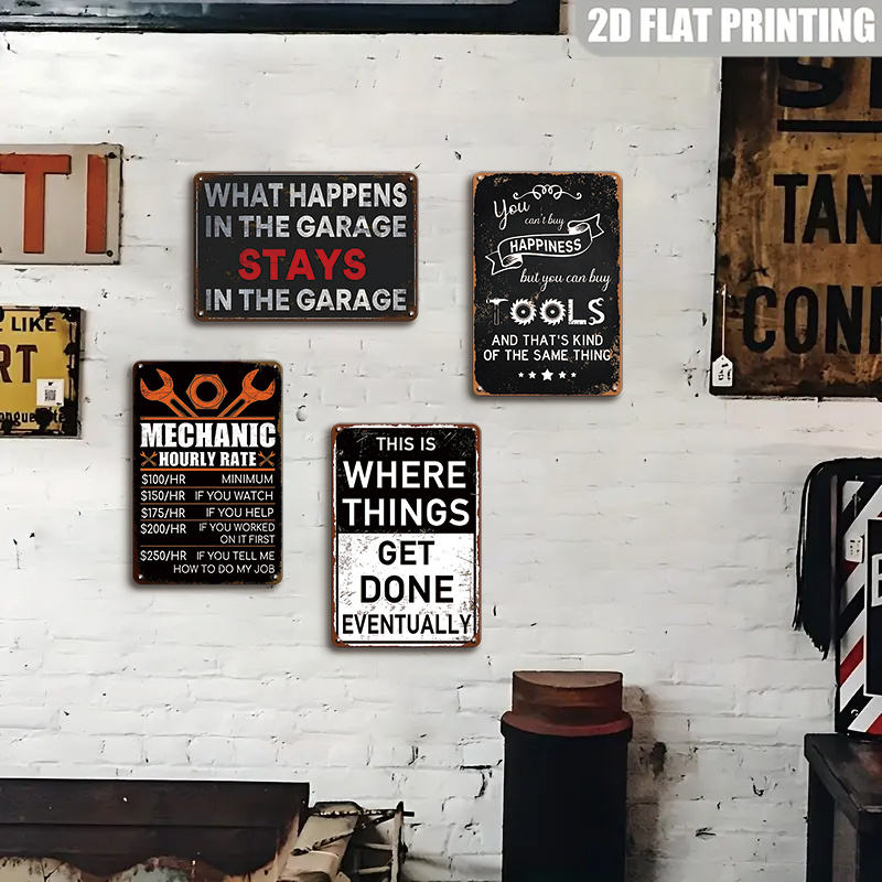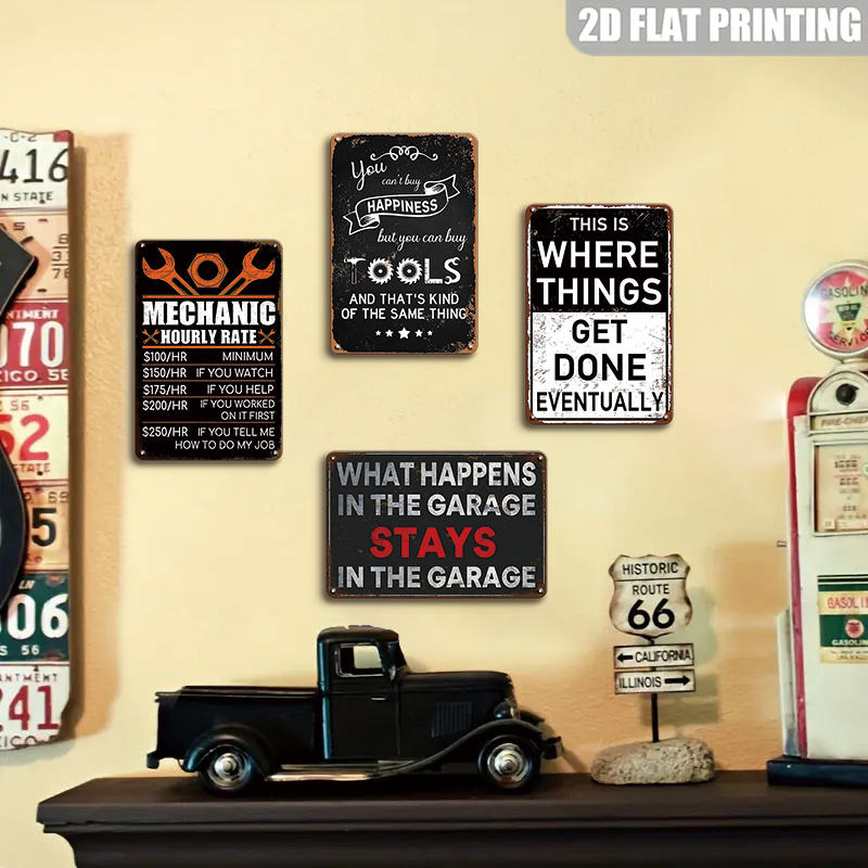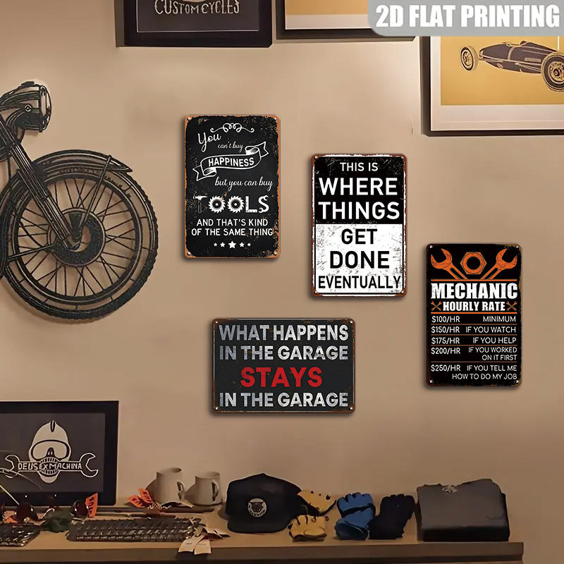 Décor mural en tôle métallique à thème outils pour la réparation de tôles, pour la grotte des hommes