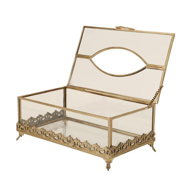 Metal Top Design With Glass Body Tissue Box for Table Decoration With Customized Color and Sizes for Hotels 22x13x10 Cm