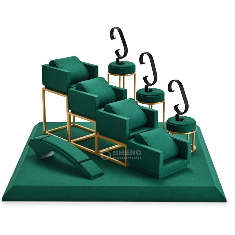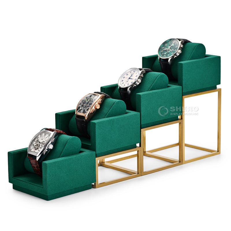Présentoir de montre en métal microfibre vert daim bijoux montre-bracelet boutique présentoir de comptoir ensemble