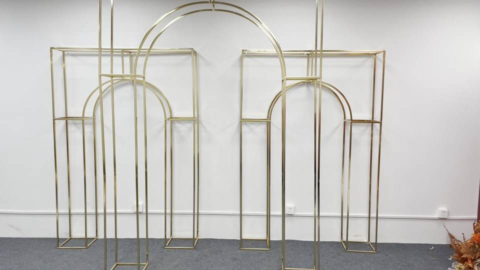 Arche de mariage en métal, fournisseur de services de planification de mariage, style moderne, nouveau look, ensemble d'arches dorées, support de toile de fond pour scène de mariage