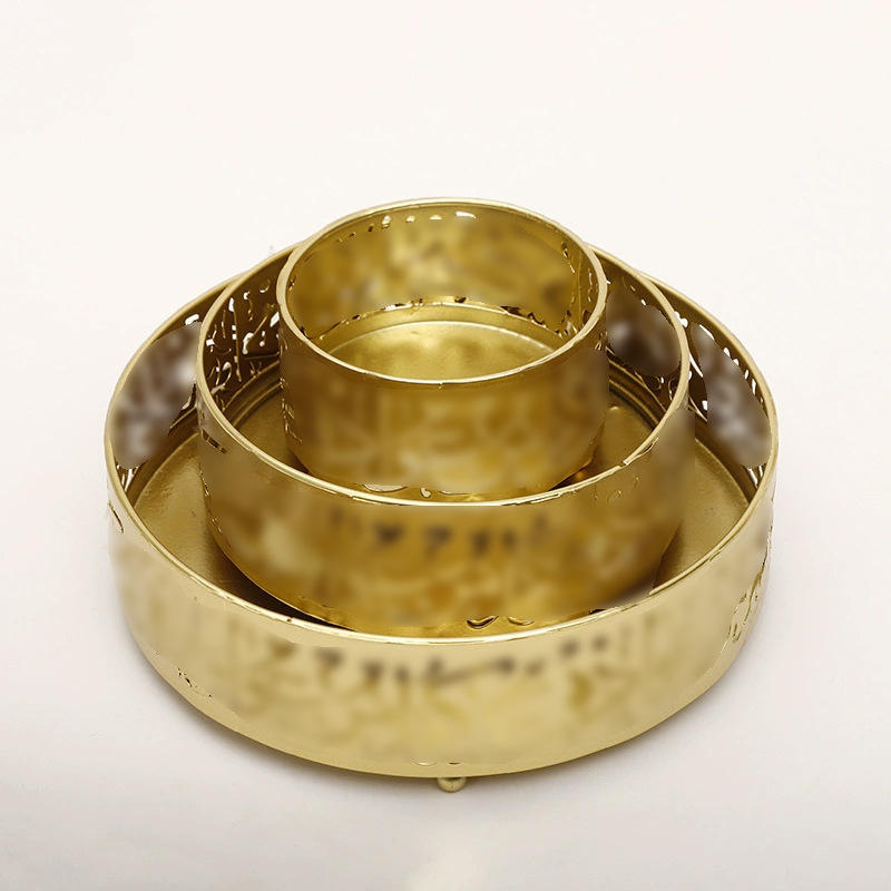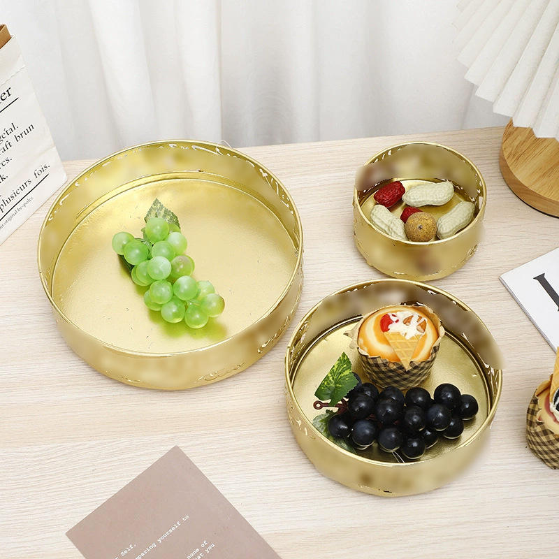 Ensemble de 3 assiettes à fruits en métal doré de luxe, creuses et rondes, pour la vente en gros