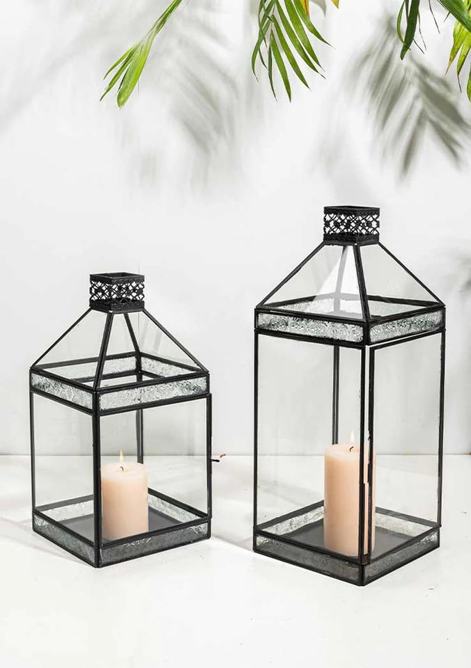 Lanterne en métal et en verre Décoration intérieure moderne Accent parfait pour la maison, le bureau, la chambre à coucher et les espaces de vie Affichage en provenance d'Inde
