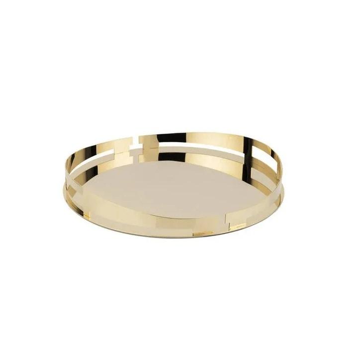 Plateau en métal et verre Vente directe d'usine Plateau de service d'art décoratif Cérémonie de mariage Fêtes Forme ronde Plaqué or Maison