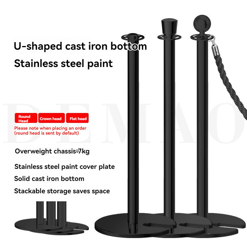 Pilier de concierge avec la tête ronde noire pure (base en caoutchouc)