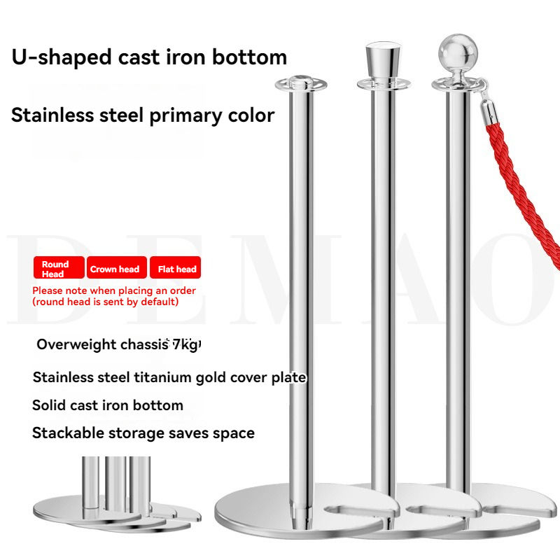 Pilier de concierge à tête plate argentée (base en caoutchouc)