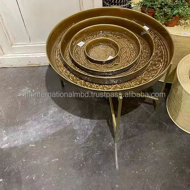 Vente de gros Plateau de service en métal émaillé gaufré avec support