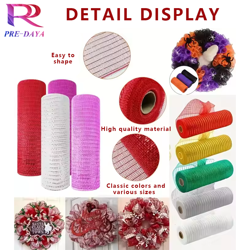 Métallique 10 pouces déco maille PP polypropylène arbre couronnes guirlande décorative escalier boîte aux lettres Swag pièce maîtresse