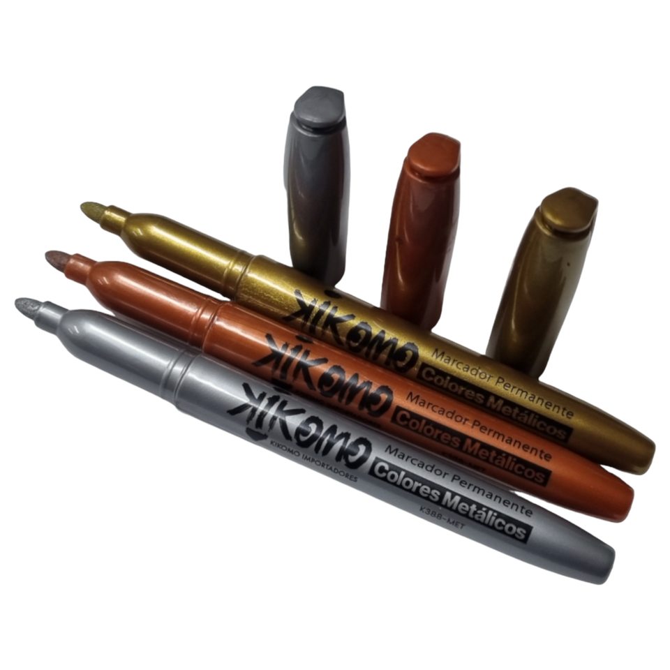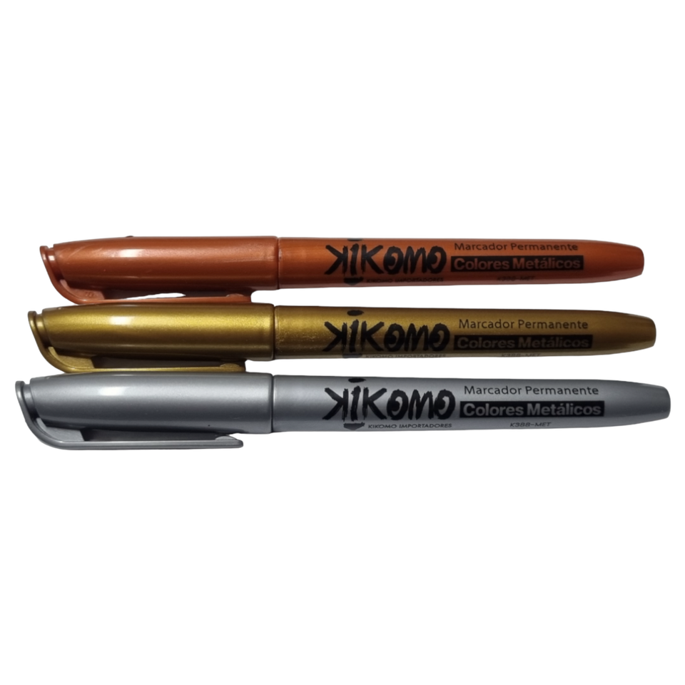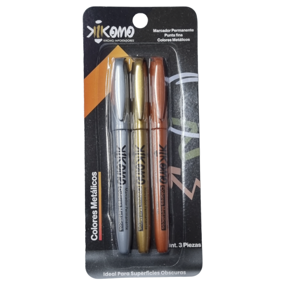 Marqueurs permanents de couleur métallique en pack blister de 3 pièces