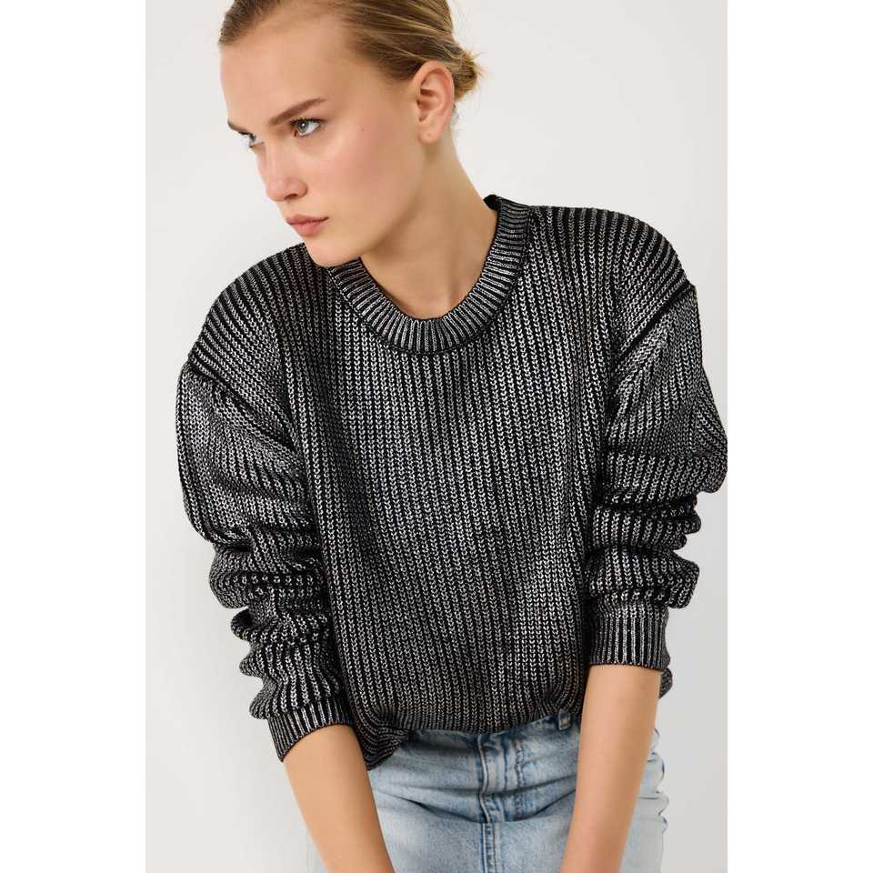 Metallic Detail Relaxed Fit Knit Sweater