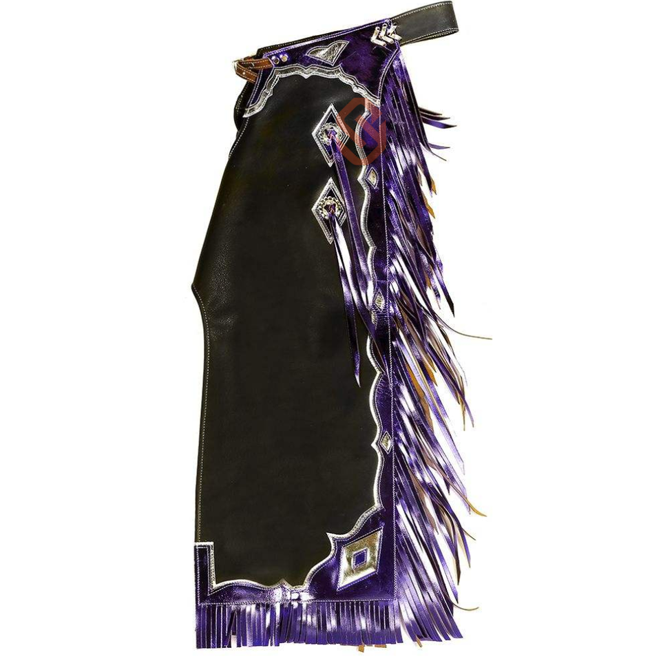 Chaps en cuir à franges métalliques pour adulte Couvre-jambes en cuir étoile élégant Chaps en cuir bleu en cuir de vachette véritable pour Festival occidental