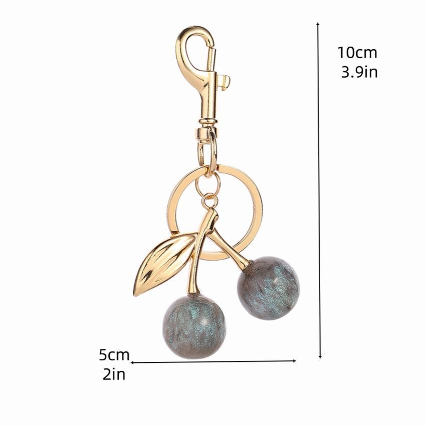 Porte-clés cerise pailleté métallique, porte-clés fruit doré, breloque de sac en résine scintillante, ornement de clé de voiture, souvenir de fête de luxe pour elle