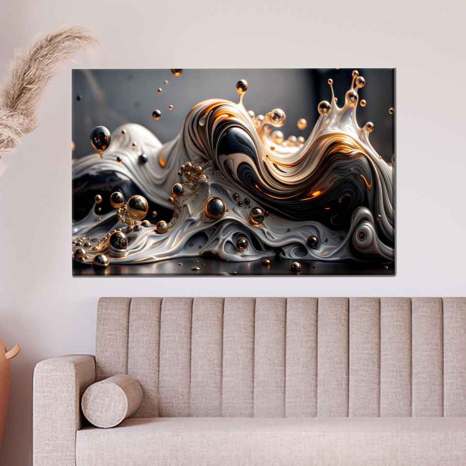 Toile murale imprimée avec motif vague liquide abstrait en or métallique, 1P : Prête à accrocher