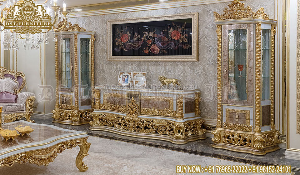 Meuble TV en finition métallique pour salon, style français, meuble TV sculpté à la main avec armoire, meuble TV sculpté à la main classique, Australie