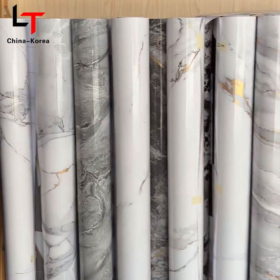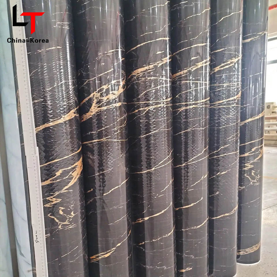 Film PVC métallisé marbre doré Film décoratif par transfert de chaleur Rouleau d'estampage à chaud pour presse à vide Fabricant de feuille laminage d'or