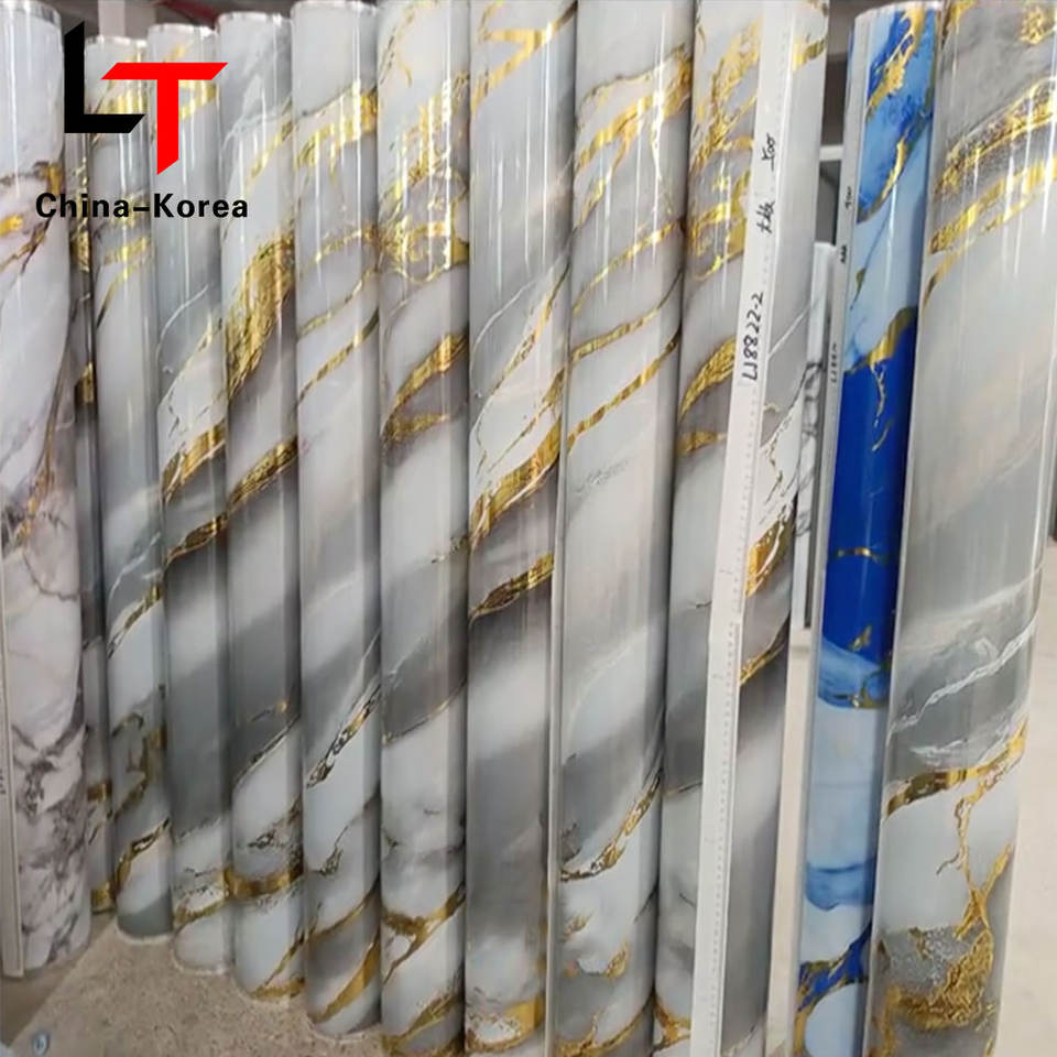 Film PVC métallisé marbre doré Film décoratif par transfert de chaleur Rouleau d'estampage à chaud pour presse à vide Fabricant de feuille laminage d'or
