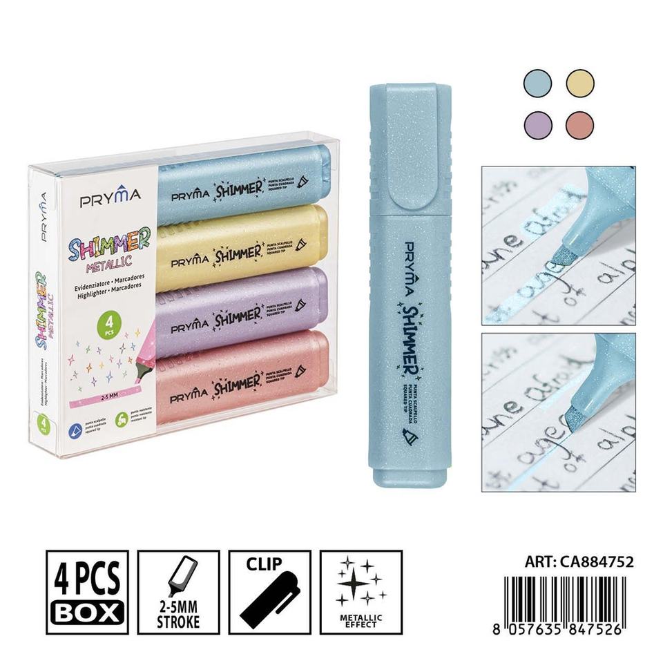 Surligneur Métallique Pastel Paillettes 2/5mm (4 pièces)-Matériel d'écriture