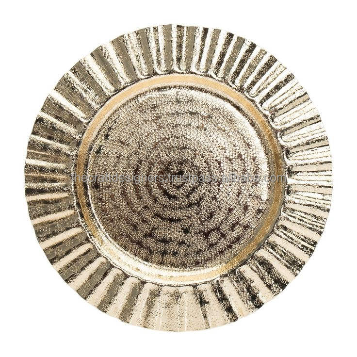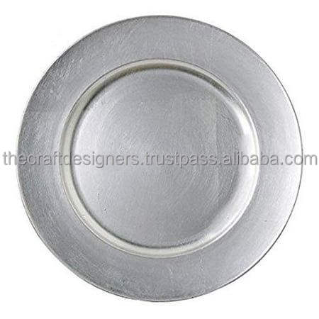 Assiette de présentation en métal argenté pour mariages et événements, ajoutant une touche de brillance glamour aux arrangements de table