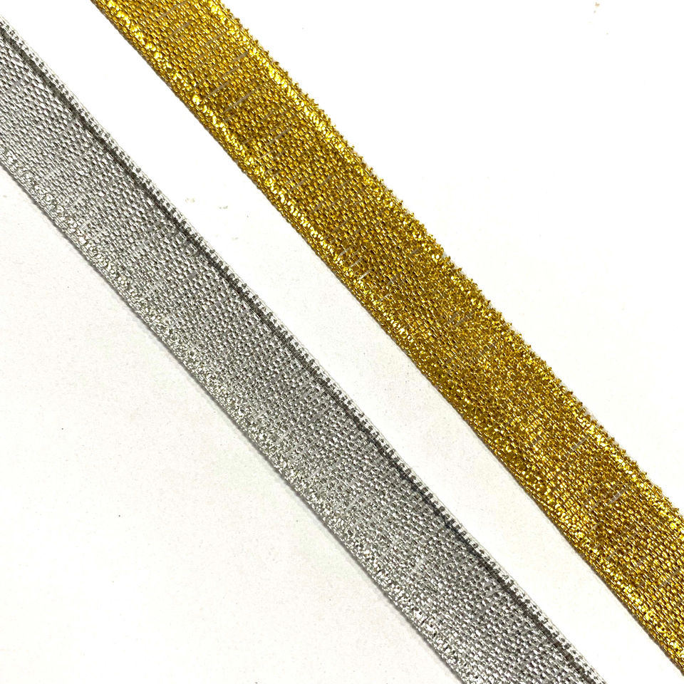 Tissu à rayures métalliques argent doré double face 100% rubans de polyester pour emballage de boîte cadeau artisanat faisant des décorations