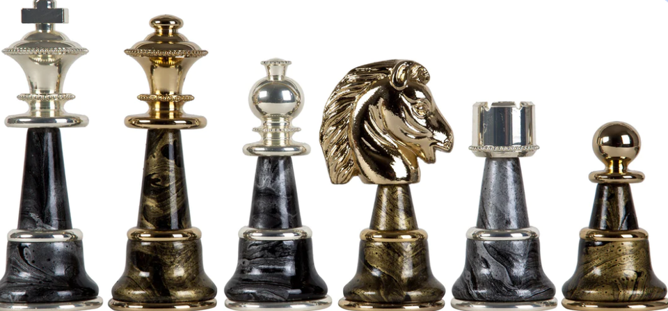 Pièces d'échecs en laiton métallique/pièce d'échecs en laiton Roi des échecs/pièces d'échecs couleur cuivre avec 2 reines supplémentaires Pièce antique argentée