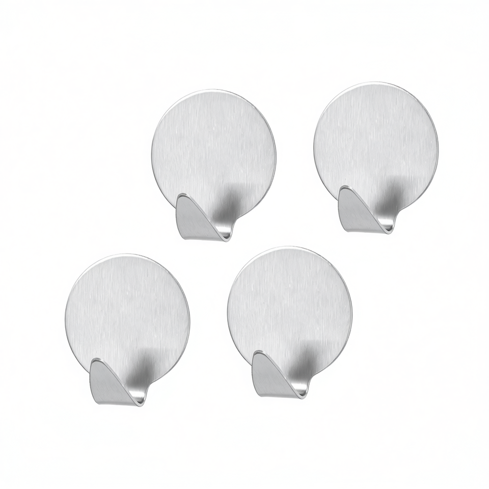 Crochets adhésifs ronds Metaltex, lot de 4, crochets muraux argentés pour la cuisine, la salle de bain, porte-manteau